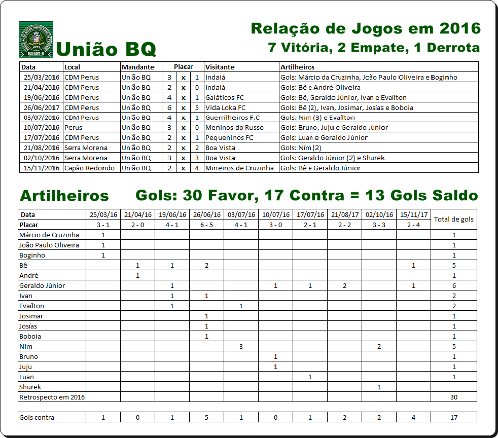 O time do União BQ ainda em início de temporada, vai tentando se ajustar em busca da formação ideal, diferente do ano anterior, onde a equipe jogou 10 jogos, venceu 7, empatou 2 jogos e perdeu apenas 1 jogo diante do adversário do próximo dia 12 de março.